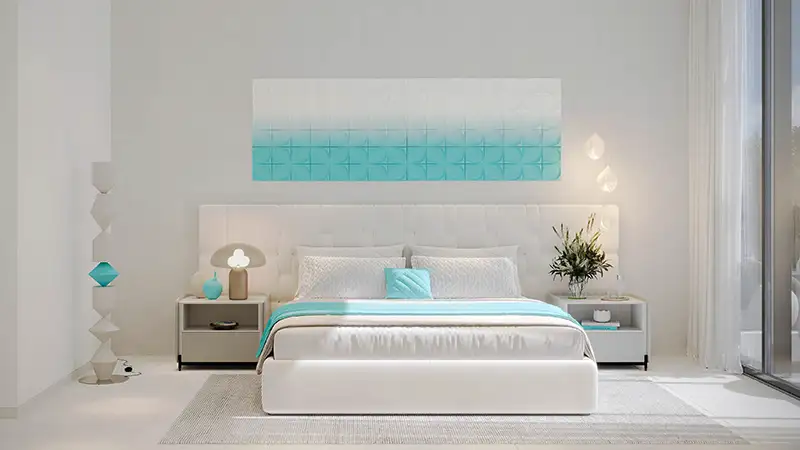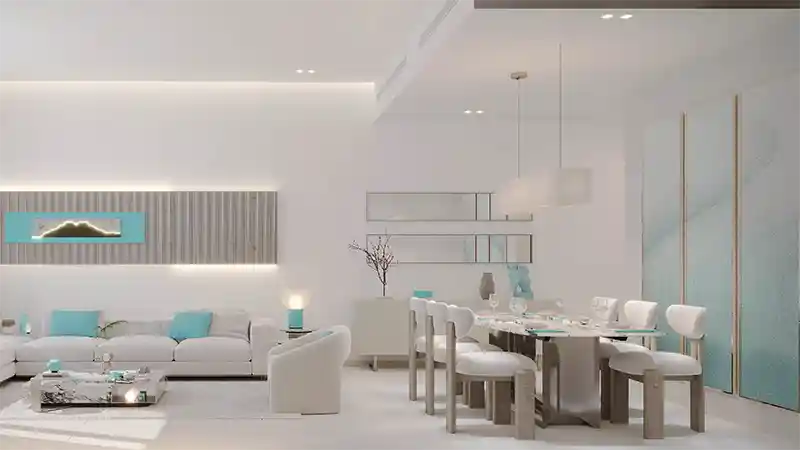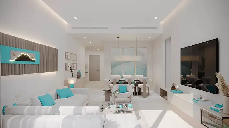 Making the welcome unforgettable, the entrance starts from the lobby area that is sculpted to offer a spacious, inspiring and naturally illuminated ambience. The elegant detail and contemporary smooth finishes set a refined, calm, and highly opulent tone. Here, the entire setup is inspired by nature’s beautiful phenomenon of reefs in turquoise and calming white tones. The grand corridors are functionally planned with contemporary and simply enticing styles. All residences are imagined with functionality, timeless elegance, and comfort in mind, with a meticulous attention to detail and sophistication.
