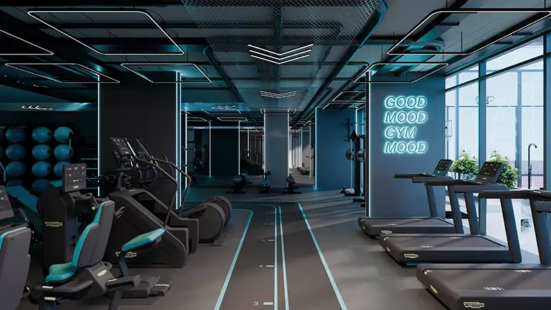 - A grand entrance lobby with soft and blue inviting tones and premium finishes, bespoke elements, and spacious corridors for fluent accessibility