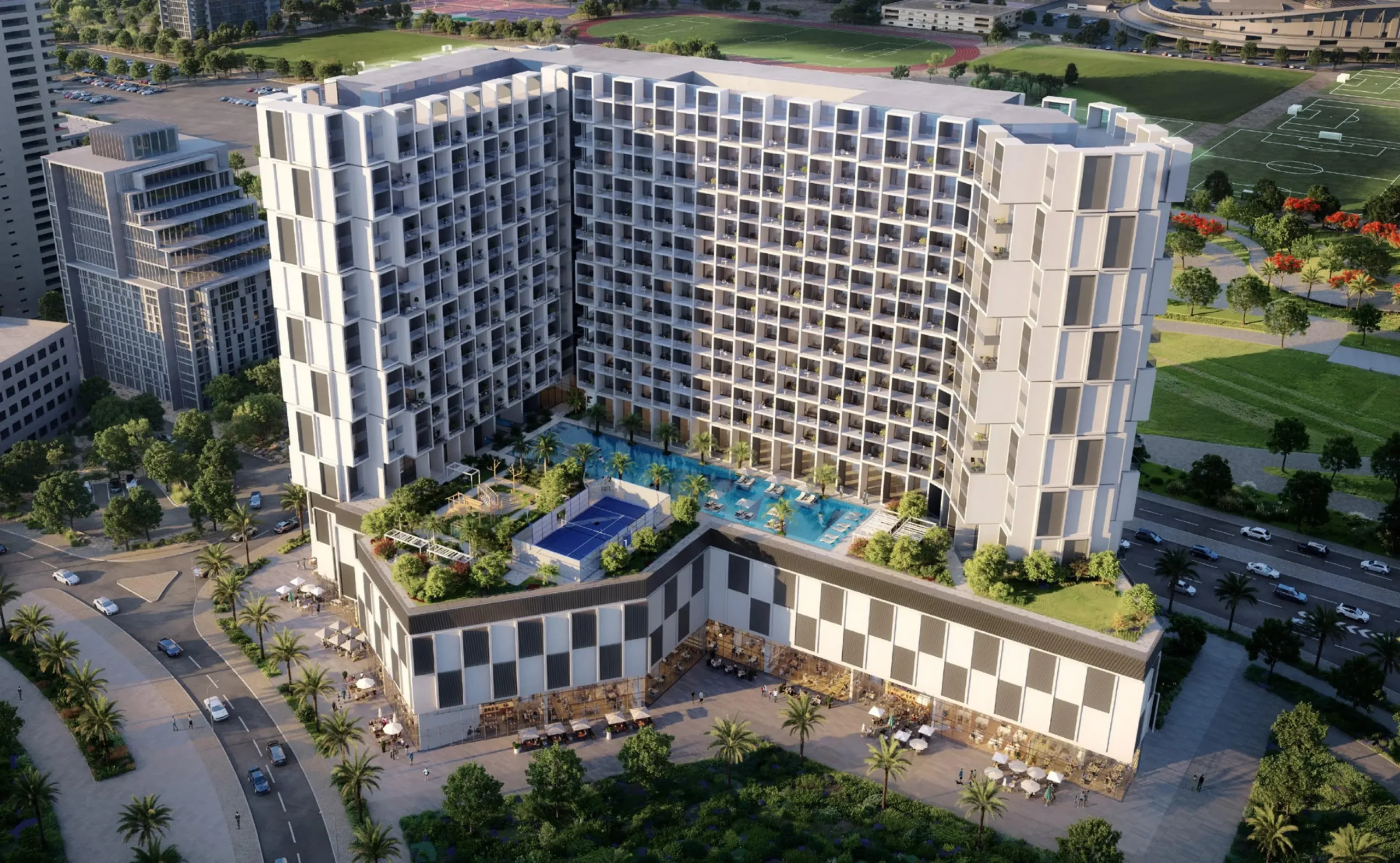Residents benefit from a wide range of premium amenities, including a swimming pool, fully equipped gym, sports court, and dedicated relaxation and social areas designed to enhance community living.