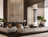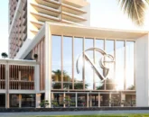 - Sleek crystalline glass façades with brass finishes