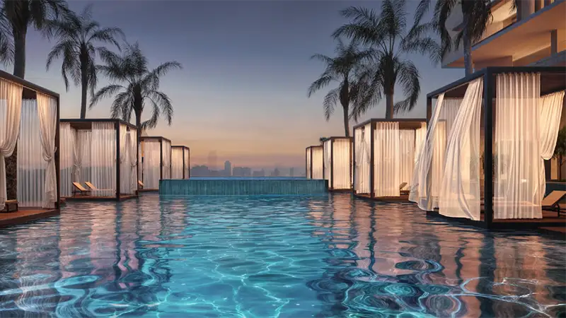 - Infinity & outdoor pools, yoga zones, and luxury spas