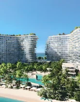 · Coastal-inspired architecture featuring curvilinear forms, elevated podiums, flowing water elements, and panoramic sea-facing balconies