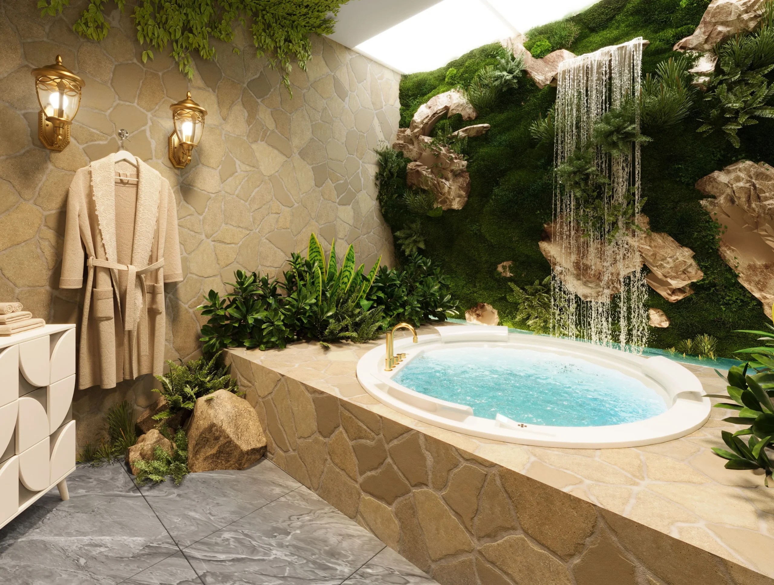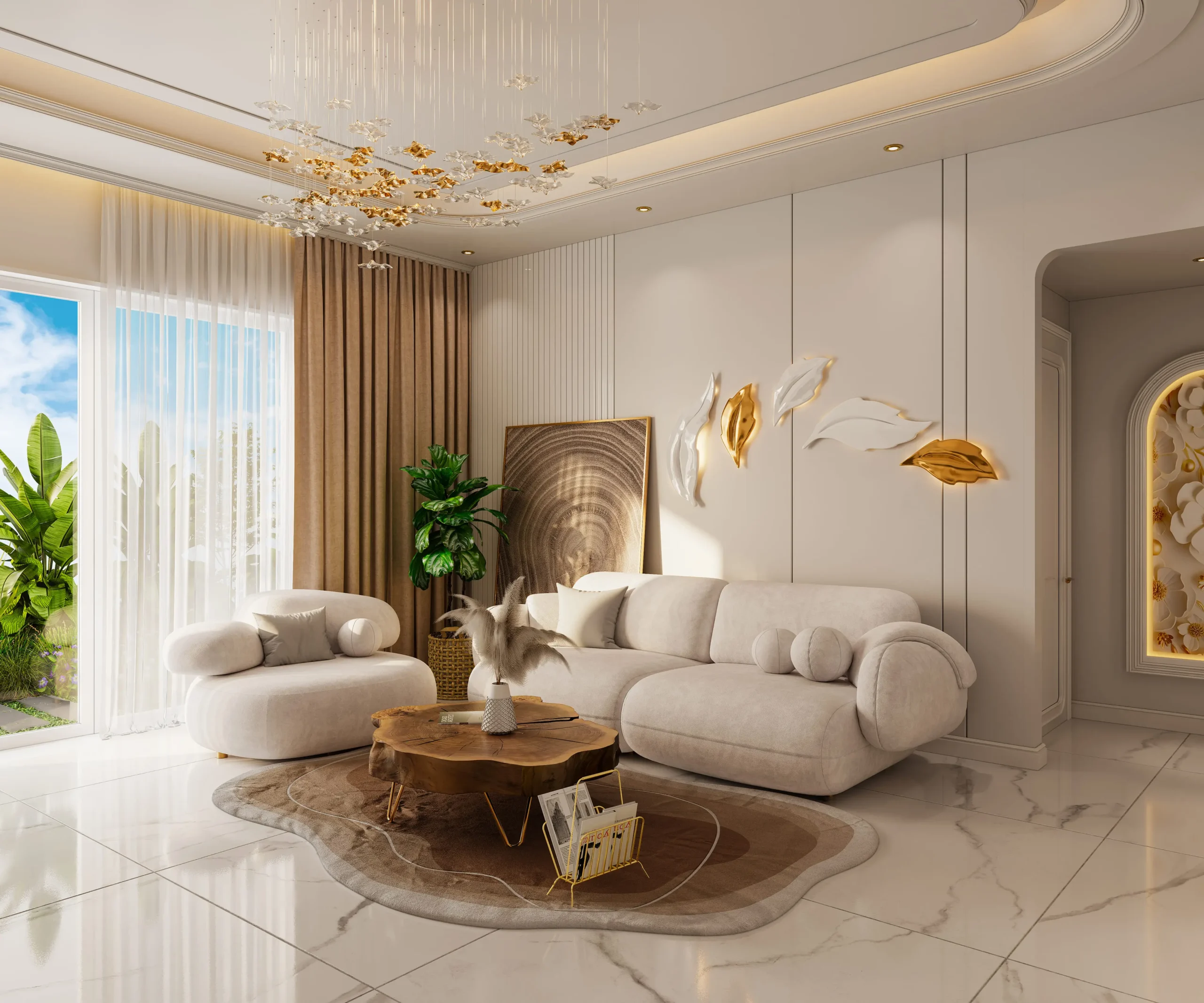The architecture of the complex follows a Victorian style enhanced with elements of biophilic design, creating an atmosphere of natural harmony. The interiors were developed in collaboration with wellness experts, making them truly unique. The color palette is composed of soft neutral tones with golden accents and abundant natural light, offering a sense of comfort and serenity.
