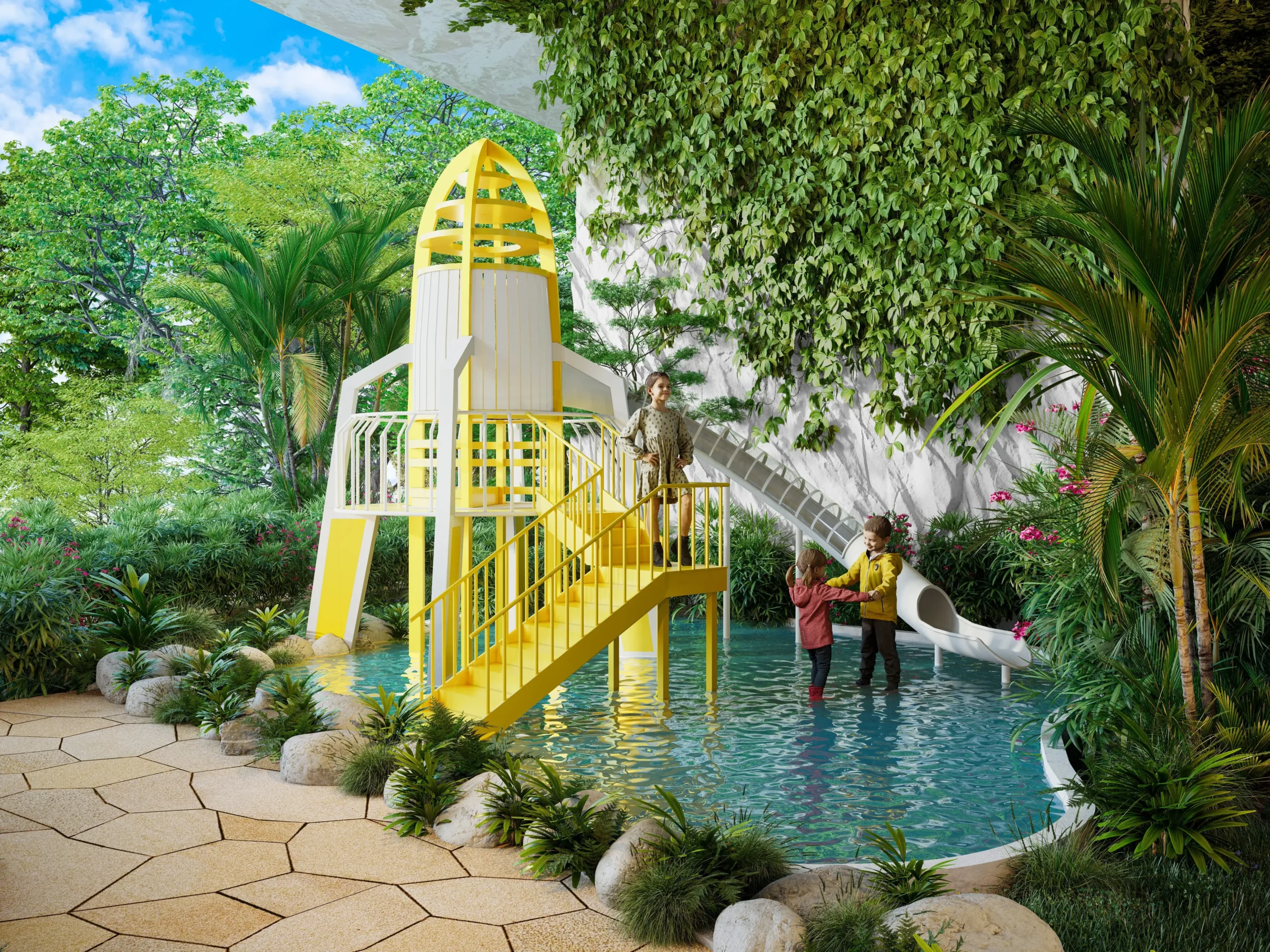 Residents have access to extensive wellness facilities – a clubhouse, a hanging park, a garden, hydrotherapy areas, a bamboo alley, a salt room, and a yoga studio.